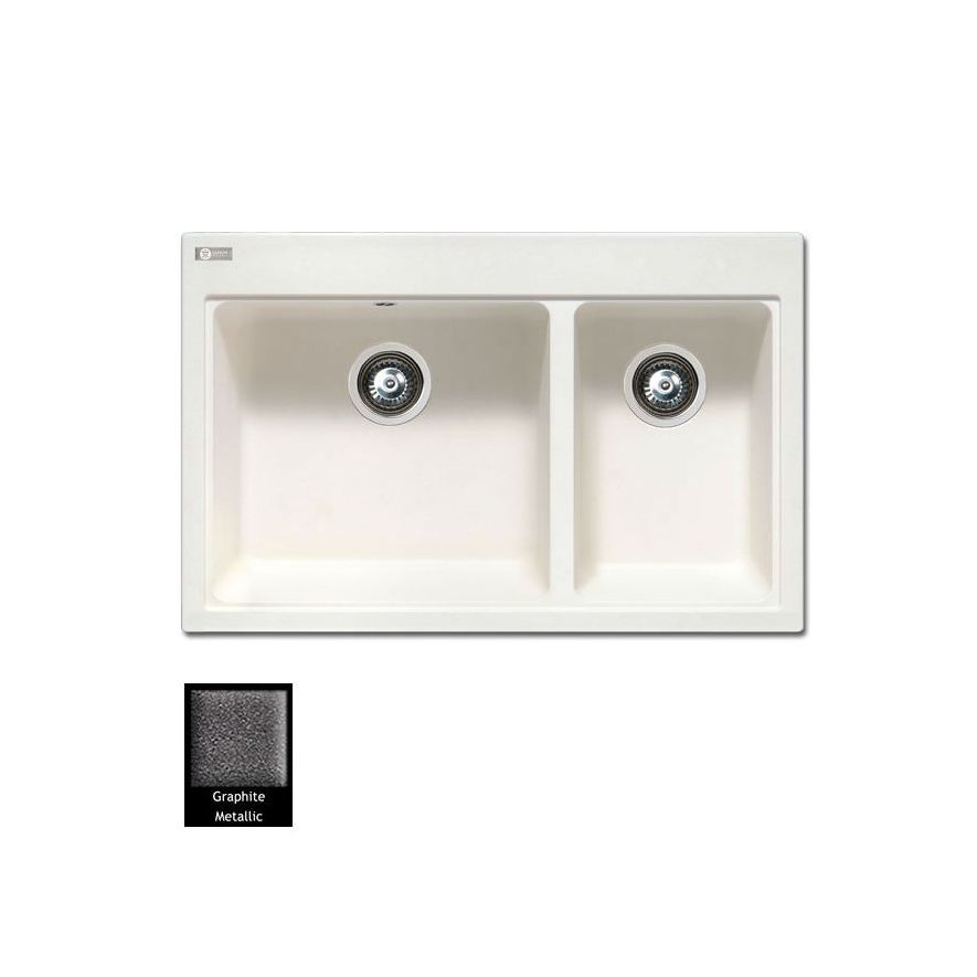 Ένθετος νεροχύτης ορυκτού γρανίτη με δύο ασύμμετρες γούρνες χωρίς ποδιά, Carron Phoenix μοντέλο: FIJI Graphite 5200 80x52 cm. Διατίθεται επιπλέον σε αποχρώσεις Cappuccino, Ivory, White, Espresso, Beige, Oyster & Silver Stone. Μια πλήρης γκάμα νεροχυτών, που διακρίνονται για την εξαιρετική τους αντοχή, την υψηλή ποιότητα και τα φυσικά χρώματα, συνδυάζουν άψογα την κομψότητα και την εργονομία.