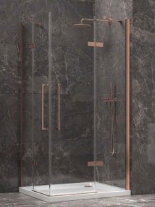 Καμπίνα ντουζιέρας ανοιγόμενη τετράγωνη Karag μοντέλο TINOS 100 Rose Gold, 130 (5206836660295) x 130 (5206836660295) x h 200 cm, κρύσταλλο ασφαλείας 8 mm Tempered διαφανές, εξαρτήματα ορειχάλκινα, μεταλλικά μέρη χρώμα rose gold. Στην τιμή δεν συμπεριλαμβάνεται η ντουζιέρα, το σταθερό πλαϊνό και η στήλη ντους