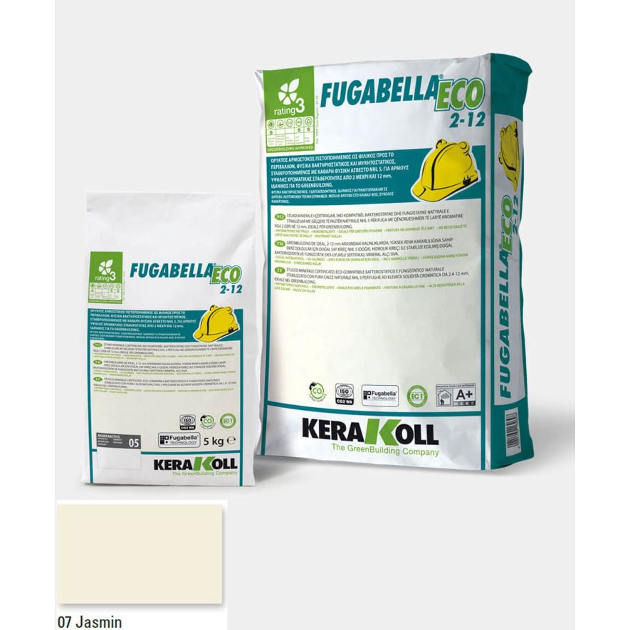 Ορυκτός αρμόστοκος, πιστοποιημένος, φιλικός προς το περιβάλλον, φυσικά βακτηριοστατικός και μυκητοστατικός σταθεροποιημένος με καθαρή φυσική άσβεστο NHL 5, KERAKOLL Fugabella Eco 2‑12 Jasmin 07   συσκευασία 5kgr, για αρμούς υψηλής χρωματικής σταθερότητας από 0 μέχρι και 8 mm, ιδανικός για το GreenBuilding.