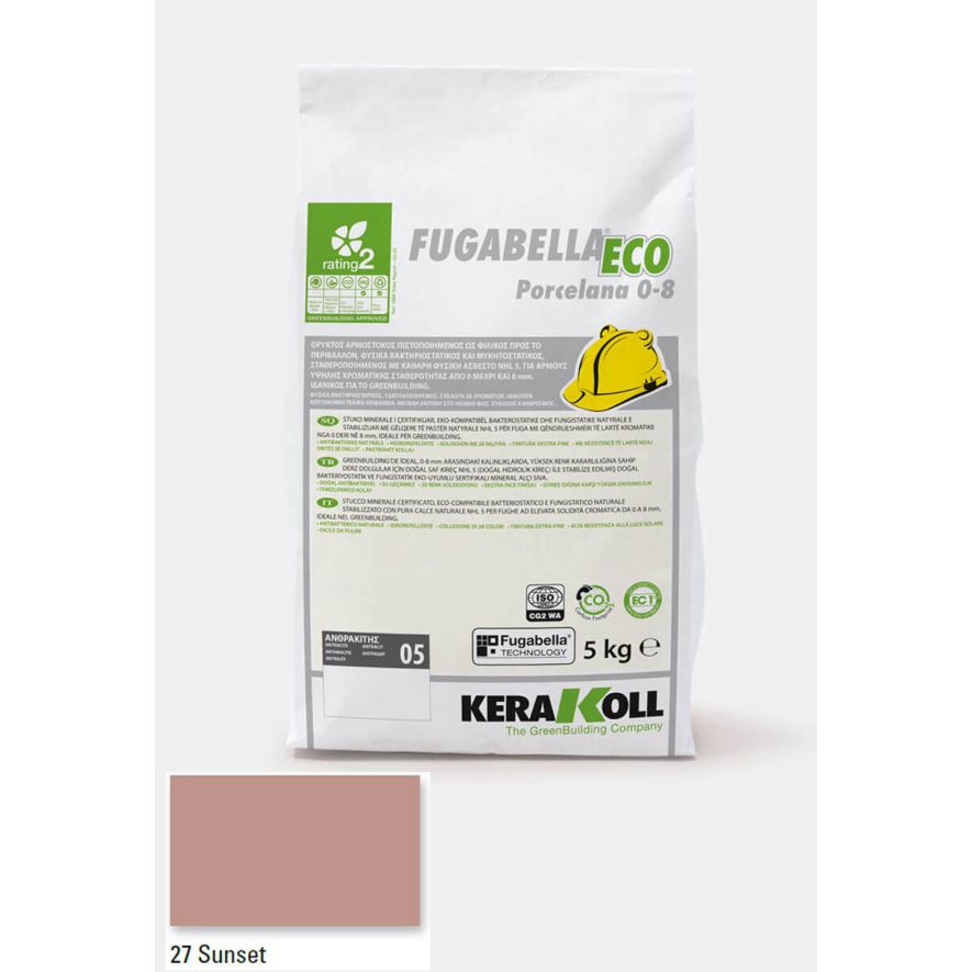 Ορυκτός αρμόστοκος, πιστοποιημένος, φιλικός προς το περιβάλλον, φυσικά βακτηριοστατικός και μυκητοστατικός σταθεροποιημένος με καθαρή φυσική άσβεστο NHL 5, KERAKOLL Fugabella Eco Porcelana 0‑8 Sunset 27 συσκευασία 5kgr, για αρμούς υψηλής χρωματικής σταθερότητας από 0 μέχρι και 8 mm, ιδανικός για το GreenBuilding.