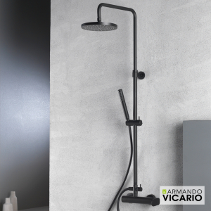 Μπαταρία ντουζιέρας με κολώνα πλήρες σετ, φινίρισμα Black Matt, της Armando Vicario σειρά SLIM μοντέλο 500065