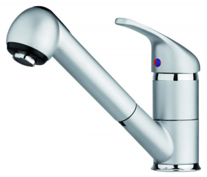 Μπαταρία νεροχύτη κουζίνας αναμεικτική κεραμικό δίσκο και εκτεινόμενο ντους, Pyramis μοντέλο Festivo Classic φινίρισμα Σατινέ.