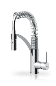 Μπαταρία νεροχύτη κουζίνας επαγγελματικού σχεδιασμού με εκτεινόμενο ντους, Pyramis μοντέλο Mini Crecento Elegant φινίρισμα χρωμέ.