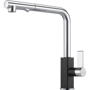Αναμεικτική μπαταρία κουζίνας με αποσπώμενο ντους, εύκαμπτο σωλήνα άθραυστο σπιράλ και περιστρεφόμενο ρουξούνι 360° της FRANKE μοντέλο:New Maris Ντους Chrome Black