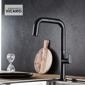 Μπαταρία κουζίνας με αποσπώμενο ντους, εύκαμπτο σωλήνα άθραυστο σπιράλ και περιστρεφόμενο ρουξούνι, φινίρισμα Black Matt, Armando Vicario EVA 400746. Όλες οι σειρές των μπαταριών Armando Vicario έχουν σχεδιαστεί για να σέβονται την αισθητική και το περιβάλλον. Όλα τα προϊόντα έχουν ιδανική σχέση ποιότητας – τιμής.