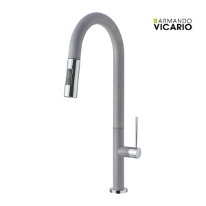Μπαταρία κουζίνας με αποσπώμενο ντους, άθραυστο σπιράλ και υψηλό περιστρεφόμενο ρουξούνι φινίρισμα CRISTADUR® Silverstone, της Armando Vicario TOZO 48780. Όλες οι σειρές των μπαταριών Armando Vicario έχουν σχεδιαστεί για να σέβονται την αισθητική και το περιβάλλον. Όλα τα προϊόντα έχουν ιδανική σχέση ποιότητας – τιμής.