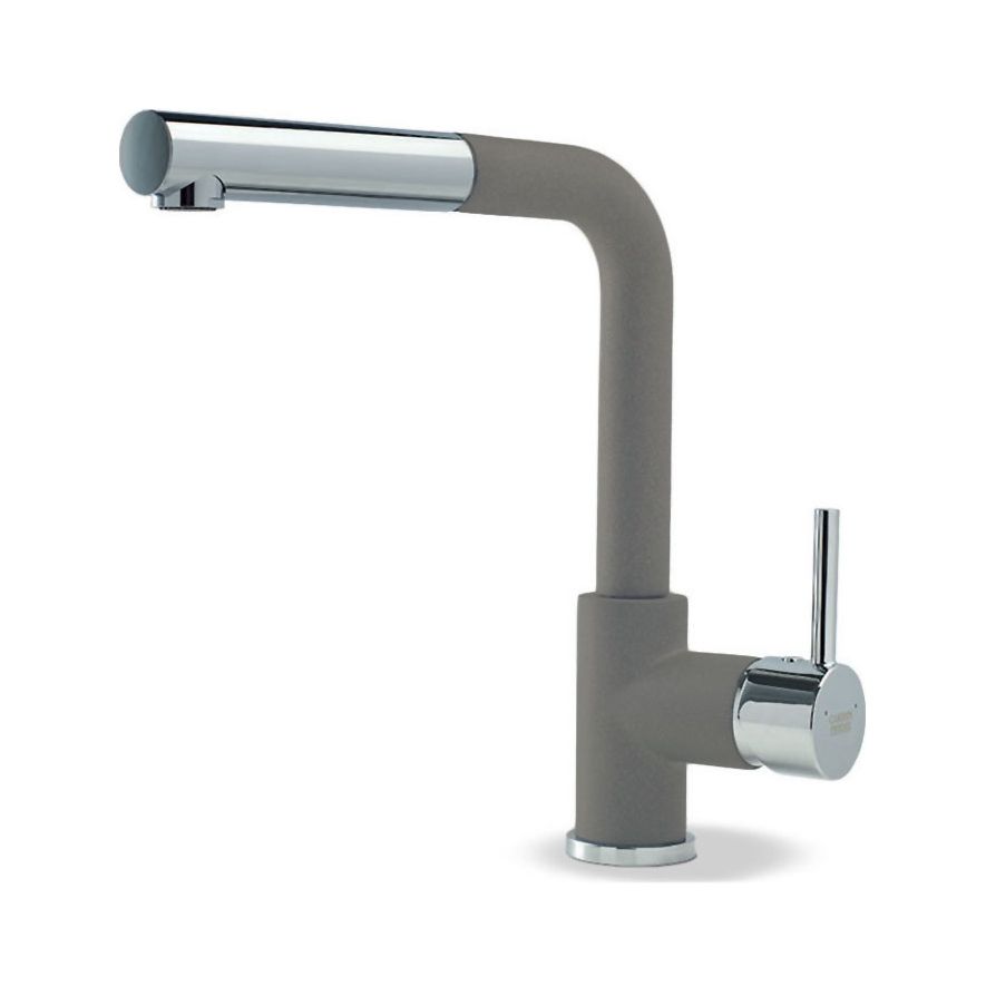 Μπαταρία κουζίνας με αποσπόμενο ντους, εύκαμπτο σωλήνα άθραυστο σπιράλ αυτόματης επαναφοράς και περιστρεφόμενο ρουξούνι, φινίρισμα Granit Silver Stone, Carron Phoenix FLUO 18580. Διατίθεται επιπλέον σε φινίρισμα χρωμέ και αποχρώσεις Granite: White, Beige, Cappuccino, Oyster και Graphite. Όλες οι σειρές των μπαταριών Carron Phoenix έχουν σχεδιαστεί για να σέβονται την αισθητική και το περιβάλλον. Όλα τα προϊόντα έχουν ιδανική σχέση ποιότητας – τιμής.