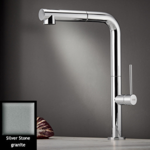 Μπαταρία κουζίνας με αποσπόμενο ντους δύο λειτουργιών (shower/spray), άθραυστο σπιράλ αυτόματης επαναφοράς και υψηλό περιστρεφόμενο ρουξούνι φινίρισμα Granite Silver Stone, Carron Phoenix TOZO 48580. Διατίθεται επιπλέον σε φινίρισμα χρωμέ, Λευκό Ματ, Μαύρο Ματ και αποχρώσεις Granite: White, Oyster και Graphite. Όλες οι σειρές των μπαταριών Carron Phoenix έχουν σχεδιαστεί για να σέβονται την αισθητική και το περιβάλλον. Όλα τα προϊόντα έχουν ιδανική σχέση ποιότητας – τιμής.