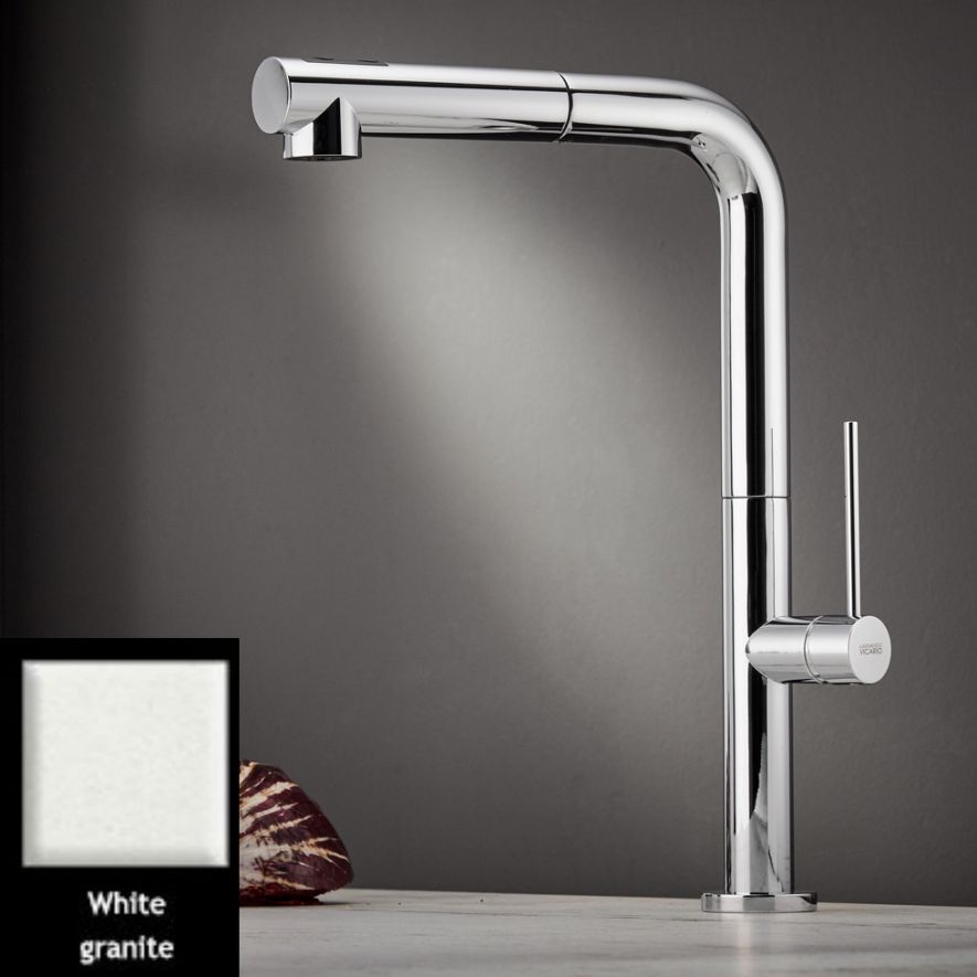 Μπαταρία κουζίνας με αποσπόμενο ντους δύο λειτουργιών (shower/spray), άθραυστο σπιράλ αυτόματης επαναφοράς και υψηλό περιστρεφόμενο ρουξούνι φινίρισμα Granite White, Carron Phoenix TOZO 48580. Διατίθεται επιπλέον σε φινίρισμα χρωμέ, Λευκό Ματ, Μαύρο Ματ και αποχρώσεις Granite: Oyster, Silver Stone και Graphite. Όλες οι σειρές των μπαταριών Carron Phoenix έχουν σχεδιαστεί για να σέβονται την αισθητική και το περιβάλλον. Όλα τα προϊόντα έχουν ιδανική σχέση ποιότητας – τιμής.