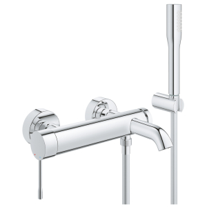Μπαταρία λουτρού επίτοιχη, σετ με ντους χειρός Euphoria Cosmopolitan Stick, σωλήνας σπιράλ Silverflex 1500mm, στήριγμα τοίχου, της GROHE σειρά ESSENCE μοντέλο 33628001 φινίρισμα χρώμιο. Με το λεπτό κυλινδρικό της σώμα, το φινίρισμα GROHE chrome finish, η μπαταρία λουτρού - ντουζιέρας GROHE Essence δείχνει υπέροχη σε κάθε σύγχρονο μπάνιο ή τουαλέτα. Μια ολοκληρωμένη σειρά από μπαταρίες εξασφαλίζει αυτό το εκλεπτυσμένο design που συναντά το σχέδιό στις δικές σας απαιτήσεις.