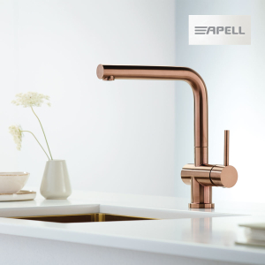 Μπαταρία κουζίνας με υψηλό περιστρεφόμενο ρουξούνι, φινίρισμα inox PVD Copper (Rame), της APELL μοντέλο AP6030 INOX. Όλες οι σειρές των μπαταριών APELL έχουν σχεδιαστεί για να σέβονται την αισθητική και το περιβάλλον. Όλα τα προϊόντα έχουν ιδανική σχέση ποιότητας – τιμής.