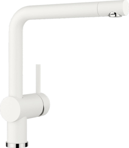 Αναμεικτική μπαταρία κουζίνας με περιστρεφόμενο ρουξούνι 360° της BLANCO μοντέλο: LINUS χρώμα White απόχρωση γρανίτη SILGRANIT™. Οι μπαταρίες BLANCO βρίσκονται στην αιχμή της τεχνολογίας και υπόκεινται στους αυστηρότερους ποιοτικούς ελέγχους.
