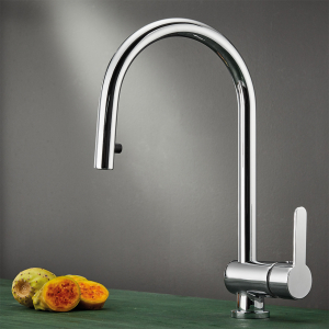 Μπαταρία νεροχύτη κουζίνας με αποσπώμενο ντους, εύκαμπτο σωλήνα άθραυστο σπιράλ και περιστρεφόμενο ρουξούνι, φινίρισμα χρωμέ, της Armando Vicario σειρά BASE μοντέλο 15780-100