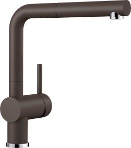 Αναμεικτική μπαταρία κουζίνας με αποσπώμενο ντους, εύκαμπτο σωλήνα άθραυστο σπιράλ και περιστρεφόμενο ρουξούνι 140° της BLANCO μοντέλο: LINUS-S χρώμα Coffee απόχρωση γρανίτη. Οι μπαταρίες BLANCO βρίσκονται στην αιχμή της τεχνολογίας και υπόκεινται στους αυστηρότερους ποιοτικούς ελέγχους.