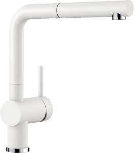 Αναμεικτική μπαταρία κουζίνας με αποσπώμενο ντους, εύκαμπτο σωλήνα άθραυστο σπιράλ και περιστρεφόμενο ρουξούνι 140° της BLANCO μοντέλο: LINUS-S χρώμα White απόχρωση γρανίτη. Οι μπαταρίες BLANCO βρίσκονται στην αιχμή της τεχνολογίας και υπόκεινται στους αυστηρότερους ποιοτικούς ελέγχους.