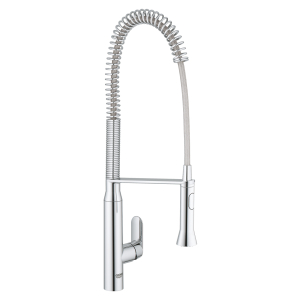 Μπαταρία νεροχύτη αναμεικτική με ντους 2 λειτουργιών (laminar spray/SpeedClean shower jet) άθραυστο σπιράλ και υψηλό ρουξούνι με εύρος περιστροφής 360°, φινίρισμα chrome της GROHE σειρά K7 μοντέλο 32950000
