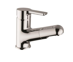 Μπαταρία νιπτήρα με αποσπώμενο ντους χαμηλού προφίλ, φινίρισμα χρωμέ και αυτόματη βαλβίδα Teorema της σειράς GOODLiFE μοντέλο 186335.