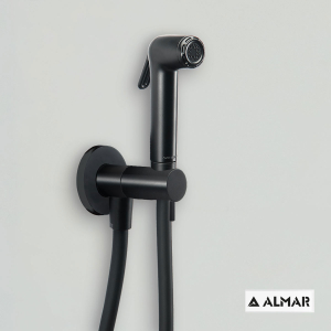 Εντοιχιζόμενη παροχή με ντουζάκι shut-off χωρίς ανάμιξη, για πλύση ατομικής υγιεινής ή πλύση λεκάνης wc, διακόπτης 1 εξόδου για κρεμαστές λεκάνες & λεκάνες υψηλής πίεσης, με ντουζάκι με stop και σπιράλ 1.2m, φινίρισμα Black Matt, της ALMAR σειρά Flush I μοντέλο E136004-400. Όλα τα προϊόντα έχουν ιδανική σχέση ποιότητας – τιμής.
