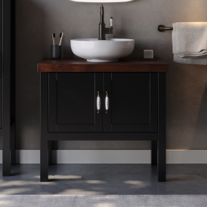 Επιδαπέδιος πάγκος έπιπλο μπάνιου της MARTIN σειρά London χρώματος Μαύρο 85cm Λάκα MDF 18mm