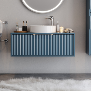 Κρεμαστός πάγκος έπιπλο μπάνιου της MARTIN σειρά HOLE χρώματος Μπλε 100cm Λάκα MDF 18mm