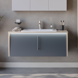 Κρεμαστός πάγκος έπιπλο μπάνιου της MARTIN σειρά iNTENSE χρώματος Ανθρακί 100cm Λάκα MDF 18mm