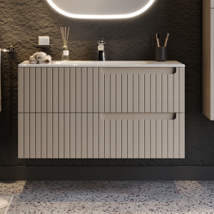 Κρεμαστός πάγκος έπιπλο μπάνιου της MARTIN σειρά Enza χρώματος Beige 100cm Λάκα MDF 18mm