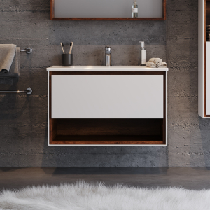 Πάγκος κρεμαστός έπιπλο μπάνιου της MARTIN σειρά Luna χρώματος Λευκό 85cm Λάκα MDF 18mm