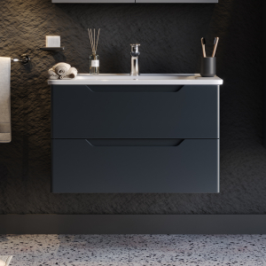 Έπιπλο μπάνιου επιτοίχιος πάγκος της MARTIN σειρά PERLA χρώματος Anthracite 80cm Λάκα MDF 18mm