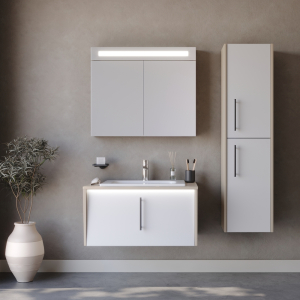 Έπιπλο μπάνιου επιτοίχιο σετ της MARTIN σειρά iNTENSE χρώματος Λευκό 80cm Λάκα MDF 18mm
