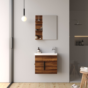 Έπιπλο μπάνιου επιτοίχιο σετ της MARTIN σειρά Sahra χρώματος Baroque 60cm Λάκα MDF 18mm. Επιτοίχια βάση επίπλου, με αποθηκευτικό χώρο, νιπτήρας κεραμικός, καθρέπτης κρεμαστός. Η σειρά επίπλων μπάνιου ακολουθεί τη λογική ενσωματώνει όλες τις σύγχρονες τάσεις στο σχεδιασμό επίπλων μπάνιου. H κρεμαστή στήλη, τα αξεσουάρ και η μπαταρία δεν συμπεριλαμβάνεται στην τιμή.