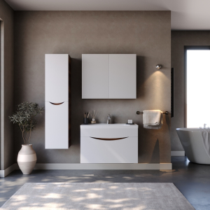 Έπιπλο μπάνιου επιτοίχιο σετ της MARTIN σειρά Smile χρώματος Λευκό / Barok 75 mat Λάκα MDF