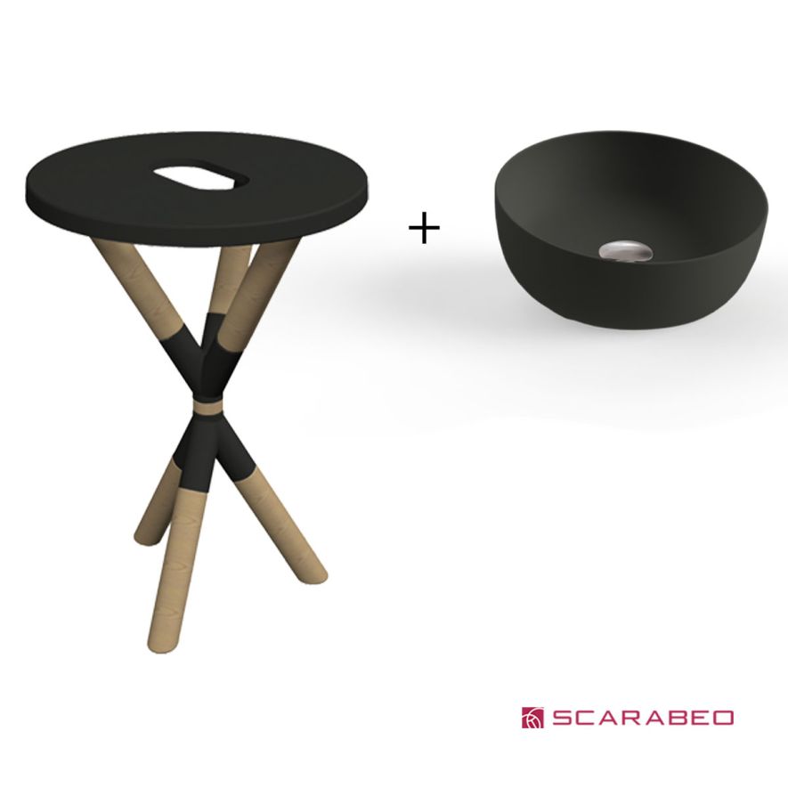 ΕΠΙΠΛΟ ΜΠΑΝΙΟΥ CROSS ARDESIA (ΜΑΥΡΟ ΜΑΤ) 2501F0-9849 & ΝΙΠΤΗΡΑΣ ΕΠΙΤΡΑΠΕΖΙΟΣ SCARABEO GLAM 1808 ARDESIA (Black Matt) Ø33 cm