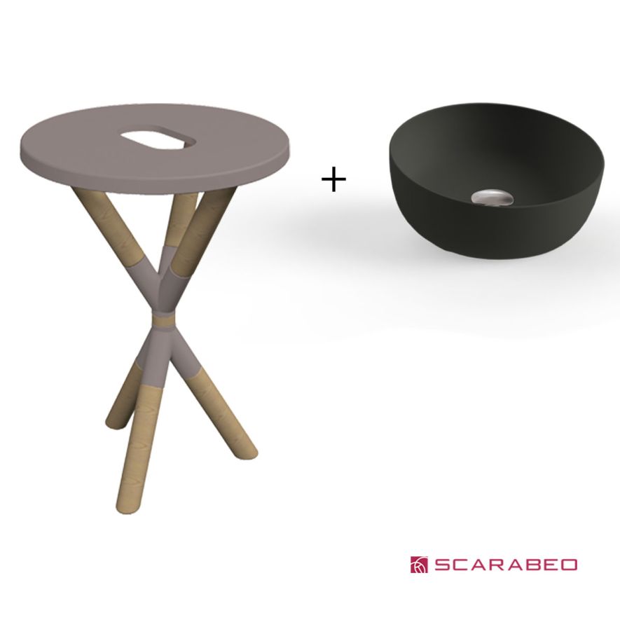 Έπιπλο μπάνιου Cross Sand (Μπεζ Ματ) 2501F0-9852 χωρίς οπή για μπαταρία ξύλο, light wood, βάση νιπτήρα & σύνδεσμοι: πορσελάνη, χρώμα sand και νιπτήρας στρογγυλός επιτραπέζιος πορσελάνης υψηλής ποιότητας, SCARABEO σειρά GLAM 1807 Ardesia (Black Matt) Ø39 cm βάθος γούρνας 10 cm χωρίς υπερχείλιση. Άριστη ποιότητα που εξασφαλίζει την απαιτούμενη αντοχή και διαχρονικότητα.