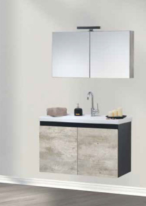 Κρεμαστό έπιπλο μπάνιου πλήρης σύνθεση COLOSSEUM bath της σειράς GEA 8410 χρώματος Metropolitan Soft / Black 80cm. Κρεμαστή βάση επίπλου από PVC πρεσσαριστά σε MDF, ενιαίος αποθηκευτικός χώρος δύο πόρτες, νιπτήρας πορσελάνης, καθρέπτης κρεμαστός, φωτιστικό led. Τα έπιπλα μπάνιου COLOSSEUM bath είναι υψηλής ποιότητας και σύγχρονου design, έχουν μεγάλη αντοχή στην υγρασία, διατίθενται σε μεγάλη ποικιλία διαστάσεων και μεγάλη ποικιλία χρωμάτων. Η μπαταρία, το φωτιστικό και τα αξεσουάρ μπάνιου δεν συμπεριλαμβάνονται στην τιμή.