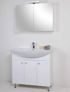 Επικαθήμενο έπιπλο μπάνιου πλήρης σύνθεση COLOSSEUM bath της σειράς ALPIS 8461 χρώματος White 90cm. Επιδαπέδια βάση επίπλου από PVC πρεσσαριστά σε MDF, ενιαίος αποθηκευτικός χώρος τρείς πόρτες, νιπτήρας πορσελάνης, καθρέπτης κρεμαστός, φωτιστικό led. Τα έπιπλα μπάνιου COLOSSEUM bath είναι υψηλής ποιότητας και σύγχρονου design, έχουν μεγάλη αντοχή στην υγρασία, διατίθενται σε μεγάλη ποικιλία διαστάσεων και μεγάλη ποικιλία χρωμάτων. Η μπαταρία, το φωτιστικό η στήλη και τα αξεσουάρ μπάνιου δεν συμπεριλαμβάνονται στην τιμή