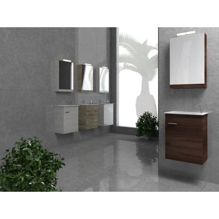 Κρεμαστό έπιπλο μπάνιου πλήρης σύνθεση SAVVOPOULOS της σειράς CRONOS III χρώματος MDF Noce 8779 Μελαμίνη 40cm. Κρεμαστή βάση επίπλου από μελαμίνη, αποθηκευτικός χώρος πόρτα, νιπτήρας πορσελάνης, καθρέπτης κρεμαστός, φωτιστικό led. Τα έπιπλα μπάνιου SAVVOPOULOS είναι υψηλής ποιότητας και σύγχρονου design, έχουν μεγάλη αντοχή στην υγρασία, διατίθενται σε μεγάλη ποικιλία διαστάσεων και μεγάλη ποικιλία χρωμάτων. Η μπαταρία και τα αξεσουάρ μπάνιου δεν συμπεριλαμβάνονται στην τιμή.
