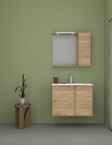 Κρεμαστό έπιπλο μπάνιου πλήρης σύνθεση SAVVOPOULOS της σειράς AMAZON IV χρώματος MDF Μελαμίνη 8086 Light Hickory 55cm. Κρεμαστή βάση επίπλου, αποθηκευτικός χώρος πόρτα, νιπτήρας πορσελάνης, καθρέπτης κρεμαστός, φωτιστικό led. Τα έπιπλα μπάνιου SAVVOPOULOS είναι υψηλής ποιότητας και σύγχρονου design, έχουν μεγάλη αντοχή στην υγρασία, διατίθενται σε μεγάλη ποικιλία διαστάσεων και μεγάλη ποικιλία χρωμάτων. Η μπαταρία και τα αξεσουάρ μπάνιου δεν συμπεριλαμβάνονται στην τιμή.
