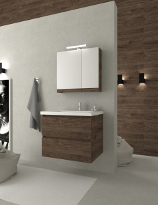 Κρεμαστό έπιπλο μπάνιου πλήρης σύνθεση SAVVOPOULOS της σειράς FUNKY III χρώματος MDF Μελαμίνη 8087 Dark Hickory 71cm. Κρεμαστή βάση επίπλου, αποθηκευτικός χώρος πόρτα, νιπτήρας πορσελάνης, καθρέπτης κρεμαστός, φωτιστικό led. Τα έπιπλα μπάνιου SAVVOPOULOS είναι υψηλής ποιότητας και σύγχρονου design, έχουν μεγάλη αντοχή στην υγρασία, διατίθενται σε μεγάλη ποικιλία διαστάσεων και μεγάλη ποικιλία χρωμάτων. Η μπαταρία το φωτιστικό και τα αξεσουάρ μπάνιου δεν συμπεριλαμβάνονται στην τιμή.