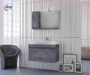 Έπιπλο μπάνιου Drop της σειράς ELEGANCE μοντέλο Senso 85 Granite 85 cm. Κρεμαστή βάση επίπλου, δύο αποθηκευτικοί χώροι ένα συρτάρι και μια πόρτα, νιπτήρας πορσελάνης προφίλ 10 cm, καθρέπτης κρεμαστός με αριστερό ή δεξί ερμάριο κατόπιν επιλογής σας φωτιστικό led (Κατόπιν Επιλογής σας ΕΔΩ). Μοντέρνες λύσεις που ξεχωρίζουν, για ένα μπάνιο με προσωπικότητα. Η μπαταρία, το φωτιστικό και τα αξεσουάρ μπάνιου δεν συμπεριλαμβάνονται στην τιμή