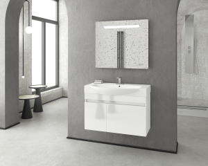 Έπιπλο μπάνιου Drop της σειράς ELEGANCE μοντέλο Senso 85 White - 2 85 cm. Κρεμαστή βάση επίπλου, δύο αποθηκευτικοί χώροι ένα συρτάρι και μια πόρτα, νιπτήρας πορσελάνης προφίλ 10 cm, καθρέπτης κρεμαστός φωτιζόμενος led. Μοντέρνες λύσεις που ξεχωρίζουν, για ένα μπάνιο με προσωπικότητα. Η μπαταρία και τα αξεσουάρ μπάνιου δεν συμπεριλαμβάνονται στην τιμή