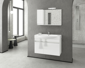 Έπιπλο μπάνιου Drop της σειράς ELEGANCE μοντέλο Senso 85 White 85 cm. Κρεμαστή βάση επίπλου, δύο αποθηκευτικοί χώροι ένα συρτάρι και μια πόρτα, νιπτήρας πορσελάνης προφίλ 10 cm, καθρέπτης κρεμαστός με αριστερό ή δεξί ερμάριο κατόπιν επιλογής σας φωτιστικό led (Κατόπιν Επιλογής σας ΕΔΩ). Μοντέρνες λύσεις που ξεχωρίζουν, για ένα μπάνιο με προσωπικότητα. Η μπαταρία, το φωτιστικό και τα αξεσουάρ μπάνιου δεν συμπεριλαμβάνονται στην τιμή