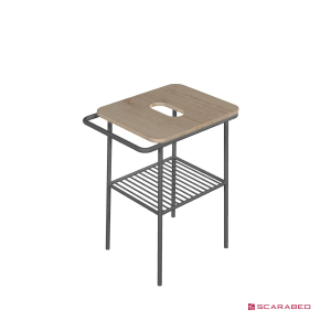 · Έπιπλο - Διάσταση: 59 x 45 x h.76 cm • Σκελετός: μεταλλικός χρώμα Black Matt, πάγκος: ξύλο, χρώμα Rovere Nodato - Δυνατότητα ανοίγματος οπής για επιτραπέζια μπαταρία (από ιδιώτη)