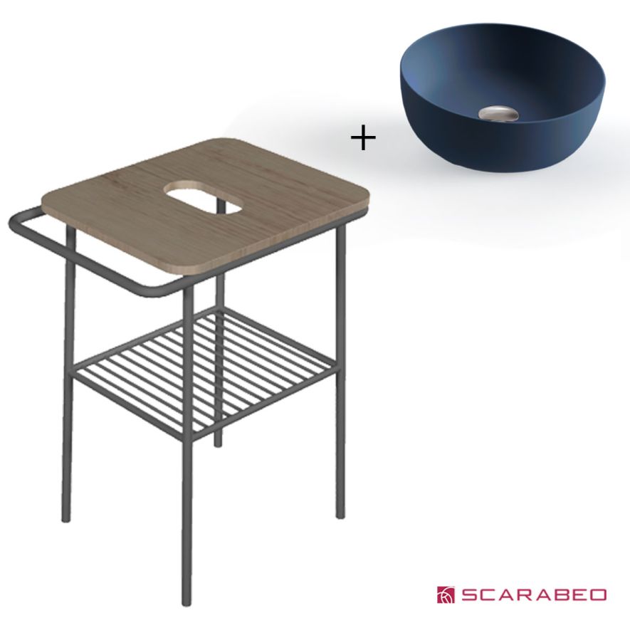ΕΠΙΠΛΟ ΜΠΑΝΙΟΥ ΠΑΓΚΟΣ FUJI 60 6016-8949 ROVERE NODATO / BLACK MATT & ΝΙΠΤΗΡΑΣ ΕΠΙΤΡΑΠΕΖΙΟΣ SCARABEO GLAM 1807 OCEAN 59x45xh77cm