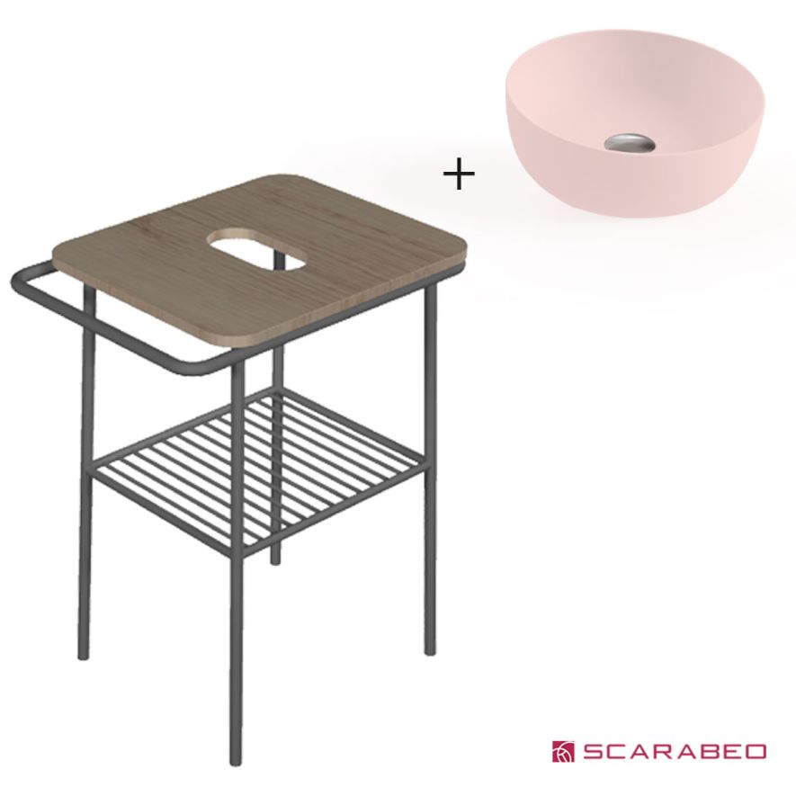 ΕΠΙΠΛΟ ΜΠΑΝΙΟΥ ΠΑΓΚΟΣ FUJI 60 6016-8949 ROVERE NODATO / BLACK MATT & ΝΙΠΤΗΡΑΣ ΕΠΙΤΡΑΠΕΖΙΟΣ SCARABEO GLAM 1807 PINK 59x45xh77cm