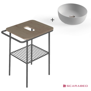 Έπιπλο μπάνιου πάγκος Fuji 60 6016-8949 χωρίς οπή για μπαταρία, βάση νιπτήρα ξύλο χρώμα Rovere Nodato - σκελετός μεταλλικός, χρώμα black matt και νιπτήρας στρογγυλός επιτραπέζιος πορσελάνης υψηλής ποιότητας, SCARABEO σειρά GLAM 1808 Pearl (White Matt) Ø33 cm βάθος γούρνας 9 cm χωρίς υπερχείλιση. Άριστη ποιότητα που εξασφαλίζει την απαιτούμενη αντοχή και διαχρονικότητα.