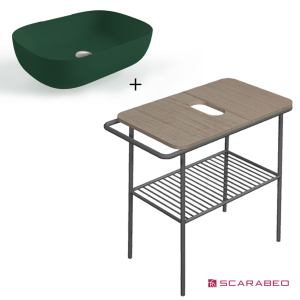 Έπιπλο μπάνιου πάγκος Fuji 80 6018-8949 χωρίς οπή για μπαταρία, βάση νιπτήρα ξύλο χρώμα Rovere Nodato - σκελετός μεταλλικός, χρώμα black matt και νιπτήρας επιτραπέζιος πορσελάνης υψηλής ποιότητας, SCARABEO σειρά GLAM 1804 χρώμα Musk 56 x 39 cm βάθος γούρνας 11 cm χωρίς υπερχείλιση. Άριστη ποιότητα που εξασφαλίζει την απαιτούμενη αντοχή και διαχρονικότητα.
