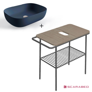 Έπιπλο μπάνιου πάγκος Fuji 80 6018-8949 χωρίς οπή για μπαταρία, βάση νιπτήρα ξύλο χρώμα Rovere Nodato - σκελετός μεταλλικός, χρώμα black matt και νιπτήρας επιτραπέζιος πορσελάνης υψηλής ποιότητας, SCARABEO σειρά GLAM 1804 χρώμα Ocean 56 x 39 cm βάθος γούρνας 11 cm χωρίς υπερχείλιση. Άριστη ποιότητα που εξασφαλίζει την απαιτούμενη αντοχή και διαχρονικότητα.