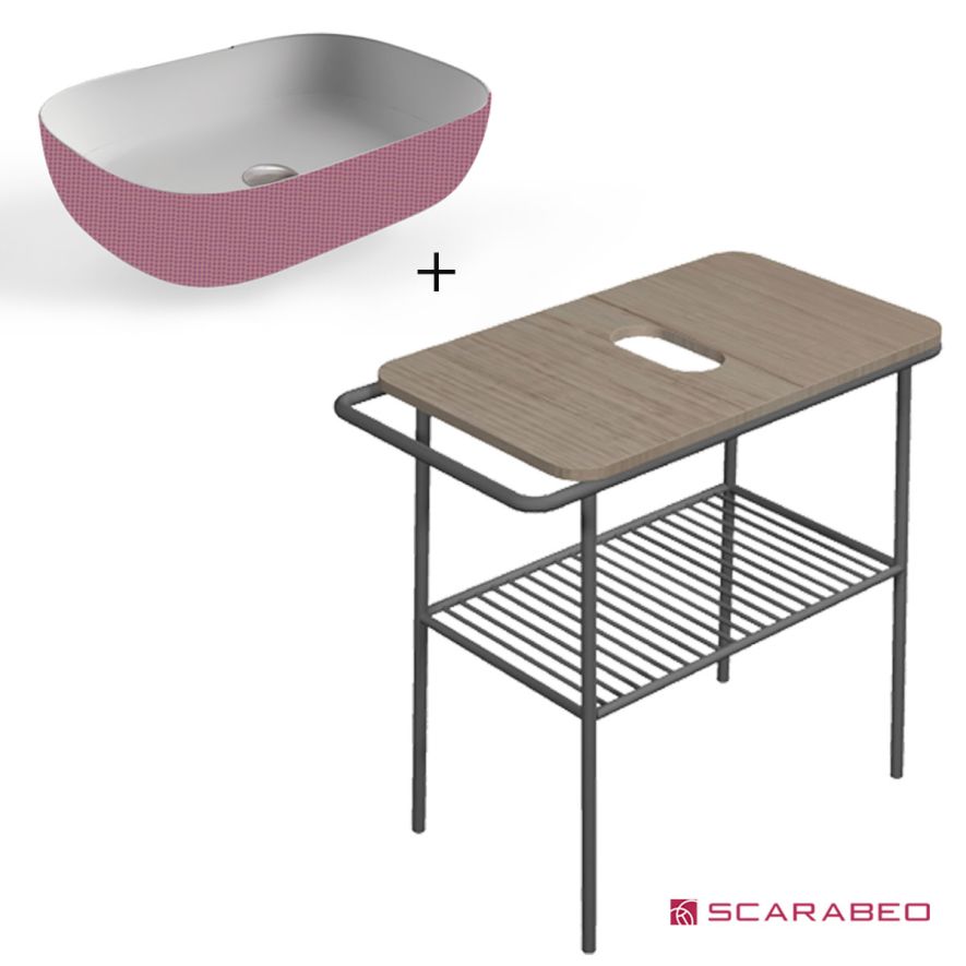 Έπιπλο μπάνιου πάγκος Fuji 80 6018-8949 χωρίς οπή για μπαταρία, βάση νιπτήρα ξύλο χρώμα Rovere Nodato - σκελετός μεταλλικός, χρώμα black matt και νιπτήρας επιτραπέζιος πορσελάνης υψηλής ποιότητας, SCARABEO σειρά GLAM 1804 χρώμα Pois Pink 56 x 39 cm βάθος γούρνας 11 cm χωρίς υπερχείλιση. Άριστη ποιότητα που εξασφαλίζει την απαιτούμενη αντοχή και διαχρονικότητα.