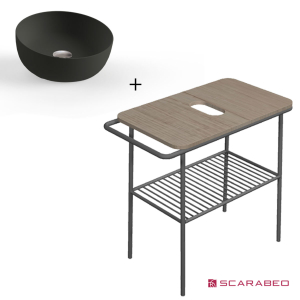 ΕΠΙΠΛΟ ΜΠΑΝΙΟΥ ΠΑΓΚΟΣ FUJI 80 6018-8949 ROVERE NODATO / BLACK MATT & ΝΙΠΤΗΡΑΣ ΕΠΙΤΡΑΠΕΖΙΟΣ SCARABEO GLAM 1808 ARDESIA (Black Matt) 79x45xh77cm