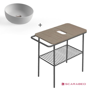 Έπιπλο μπάνιου πάγκος Fuji 80 6018-8949 χωρίς οπή για μπαταρία, βάση νιπτήρα ξύλο χρώμα Rovere Nodato - σκελετός μεταλλικός, χρώμα black matt και νιπτήρας στρογγυλός επιτραπέζιος πορσελάνης υψηλής ποιότητας, SCARABEO σειρά GLAM 1808 Pearl (White Matt) Ø33 cm βάθος γούρνας 9 cm χωρίς υπερχείλιση. Άριστη ποιότητα που εξασφαλίζει την απαιτούμενη αντοχή και διαχρονικότητα.